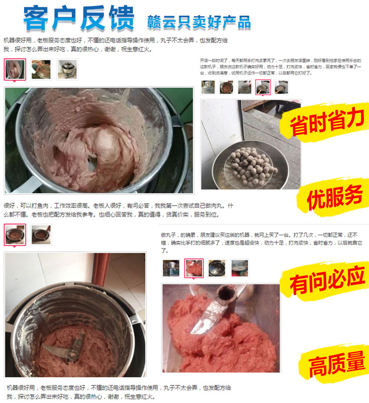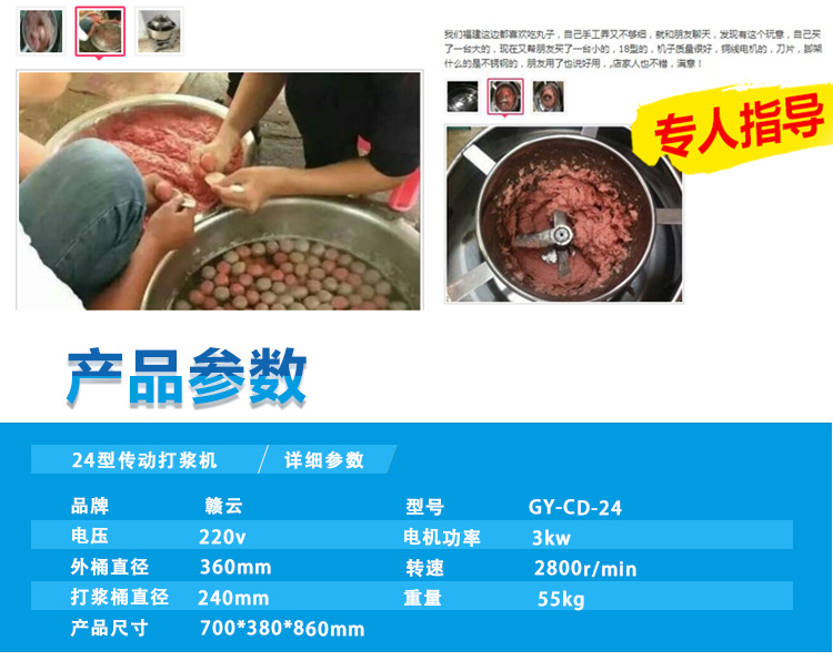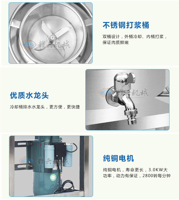 贛云牌全不銹鋼傳動(dòng)高速肉丸打漿機(jī),整機(jī)采用優(yōu)質(zhì)不銹鋼材質(zhì),拉伸桶底部弧形設(shè)計(jì),贛云新款肉丸打漿機(jī)標(biāo)志性設(shè)計(jì)。無縫焊接技術(shù)展現(xiàn)高檔品質(zhì)。一次性可打肉漿5-6斤,2分鐘左右即可完成肉漿的制作。所打肉漿細(xì)膩,是肉丸專用打漿設(shè)備之一。