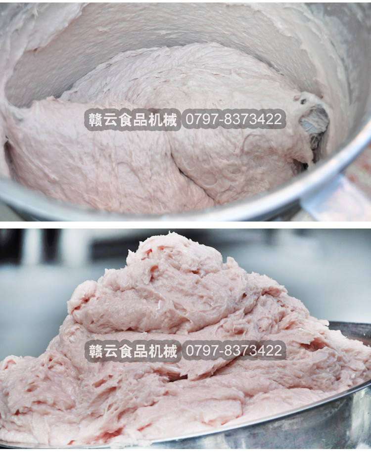 贛云牌全不銹鋼慢速魚丸、肉丸打漿機采用優(yōu)質(zhì)不銹鋼材質(zhì),通過大皮帶輪減速帶動打漿機刀片打漿,通過慢速拍打,使肉漿更具有彈性和韌性。適合魚丸、牛肉丸和貢丸的制漿之用。