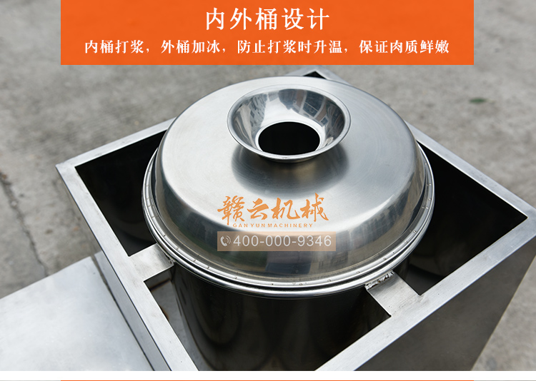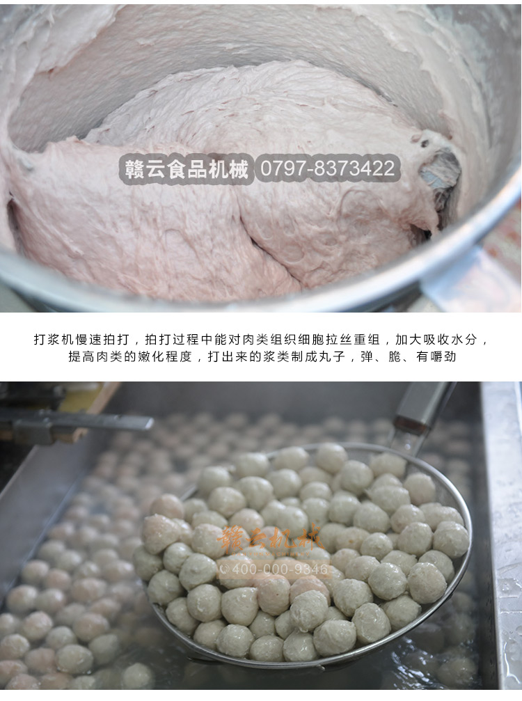 慢速肉丸打漿機有普通型和全不銹鋼型,本款為全不銹鋼系列32型慢速肉丸打漿機,打漿桶直徑320mm,一次可打肉漿15kg左右。通過大皮帶輪減速拍打肉漿,打出的肉漿更有彈性,適合魚丸、牛肉丸和貢丸的制漿之用。