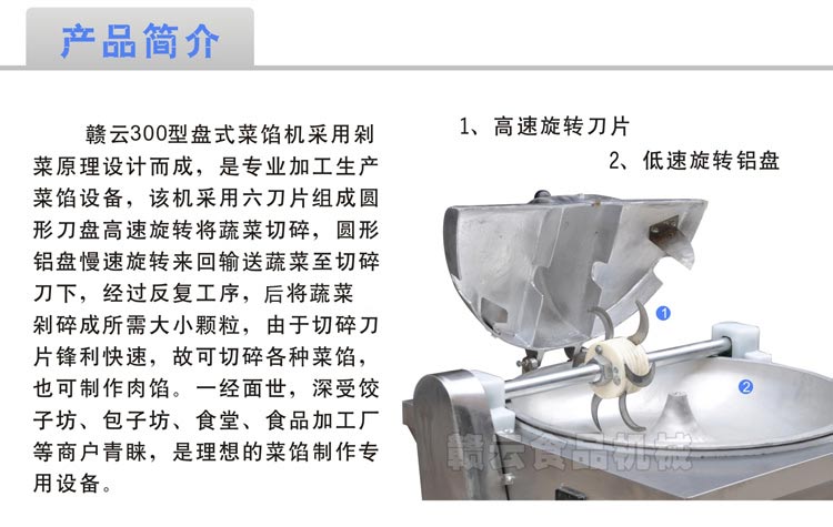 我廠生產(chǎn)的CX-300型菜餡機(jī),主要將各種根莖葉類(lèi)蔬菜加工成餡狀,是面食加工業(yè)制作蒸包餡、水餃餡和飼養(yǎng)加工蔬菜飼料的搭配設(shè)備。