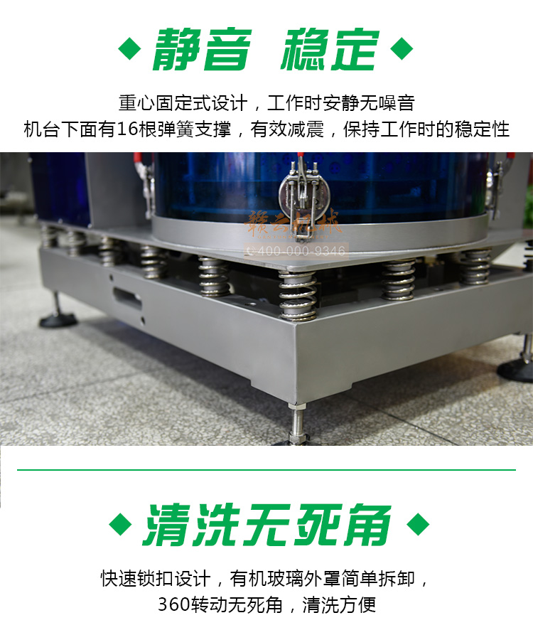 (1)穩(wěn)定性。工作時,機(jī)臺下面有16根彈簧支撐,保持工作時的穩(wěn)定性。