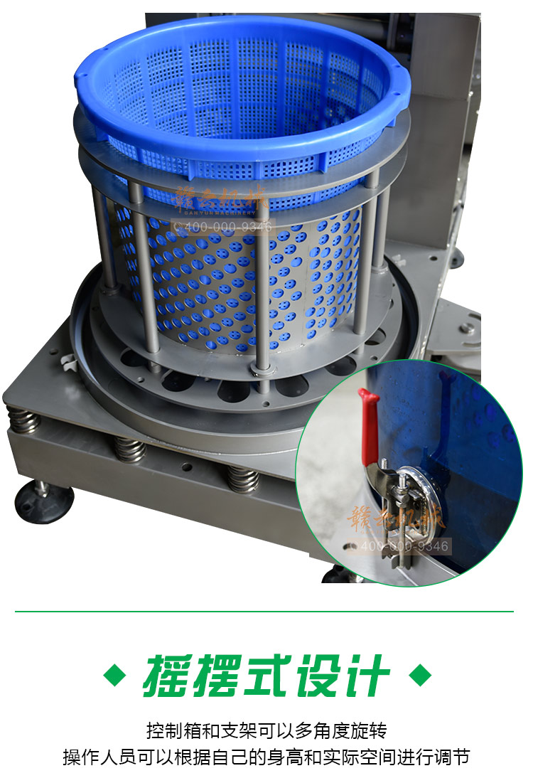 (4) 籃筐式脫水。接料方便,非傳統(tǒng)的袋裝脫水,有利于保護(hù)原料。