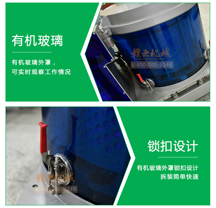 (2)低噪音。機(jī)臺工作時比較靜,打破目前市場上脫水機(jī)工業(yè)用的大噪音。