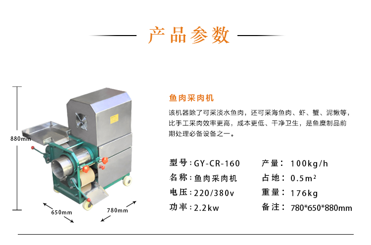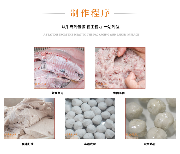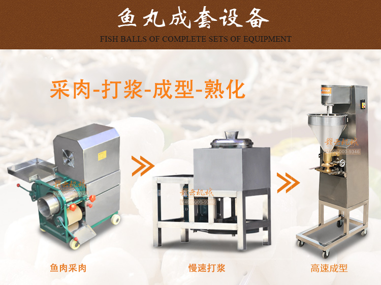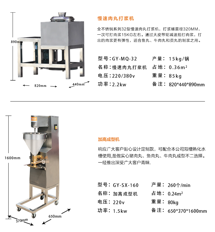 GY-CT-006型實(shí)心魚丸成套設(shè)備由:新款160型魚肉采肉機(jī)、32型慢速肉丸打漿機(jī)、160型實(shí)心肉丸成型機(jī)和1500型雙槽加熱水槽四臺(tái)設(shè)備組合而成,是小作坊式專業(yè)加工生產(chǎn)實(shí)心魚丸設(shè)備。