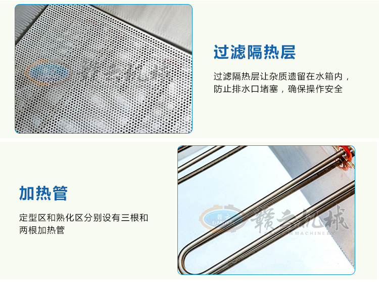 整機(jī)采用304不銹鋼板材設(shè)計(jì),中間采用發(fā)泡劑,取保溫隔熱作用,雙槽加熱,獨(dú)立控制,定型熟化分別控制,加熱速度快,省電更省心。本產(chǎn)品量身設(shè)計(jì)可配套用于我廠生產(chǎn)的包心肉丸機(jī)、牛肉貢丸機(jī)、墨魚(yú)丸成型機(jī)、獅子頭成型機(jī)、雙調(diào)速肉丸機(jī)、火鍋丸子機(jī)組等多種肉丸成型設(shè)備使用。可加油,用于油炸丸子的定型熟化,可加水,用于各種肉丸的定型熟化,根據(jù)其加熱作用原理,也適用于其他肉制品的和非肉制品產(chǎn)品的熟化定型等用途。