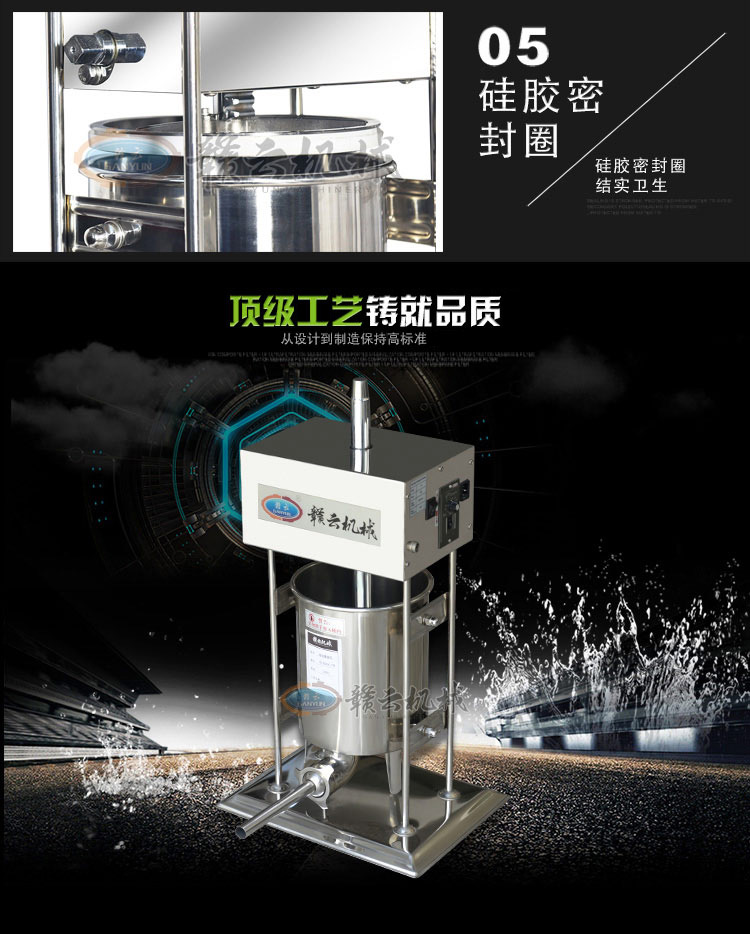 冬季灌腸新添專業(yè)灌腸設(shè)備,贛云牌立式不銹鋼電動(dòng)灌腸機(jī),專業(yè)灌制各種腸類,如臘腸、香腸、火腿腸、親親腸。變頻速度可調(diào),灌腸讓你隨心所欲,整機(jī)采用全齒輪優(yōu)質(zhì)拉桿升降系統(tǒng)設(shè)計(jì).腳踏開關(guān)隨意控制,配合自動(dòng)升降系統(tǒng)及變速可調(diào),灌腸速度快,效果好。