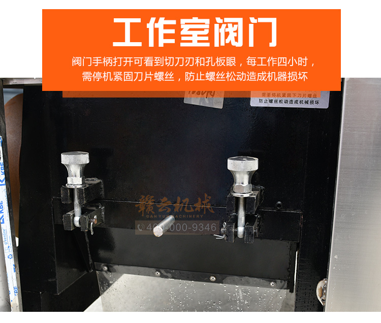 b)開機(jī)空轉(zhuǎn)檢查切刀轉(zhuǎn)向是否正確,如出現(xiàn)方向反轉(zhuǎn),請對換三相電源線接順序;確定切刀轉(zhuǎn)向正確后,啟動空轉(zhuǎn)3分鐘,扣緊送投料室,使保護(hù)開關(guān)完全接觸,符合破碎條件,即可投料生產(chǎn)。