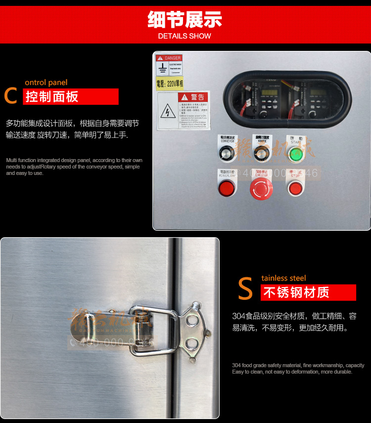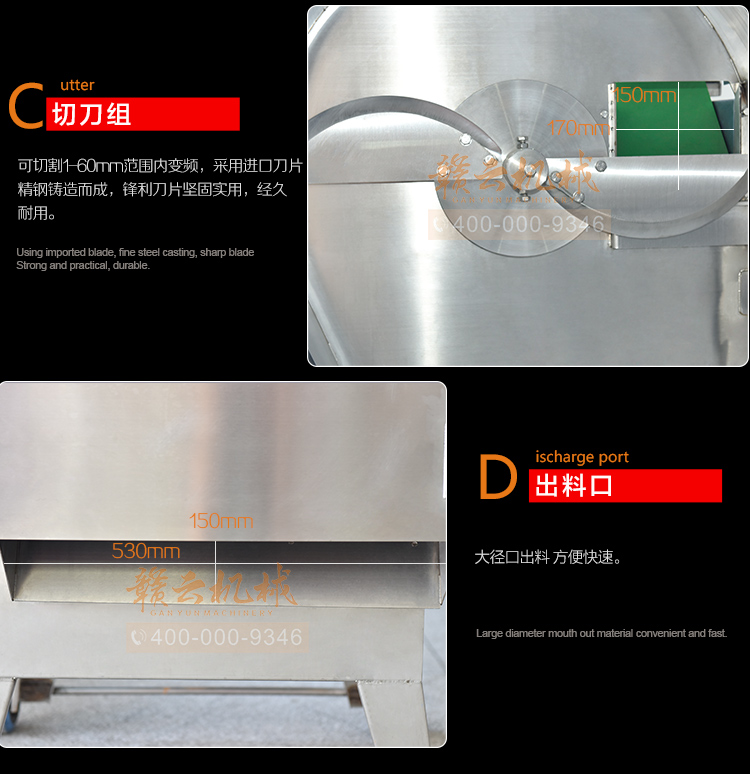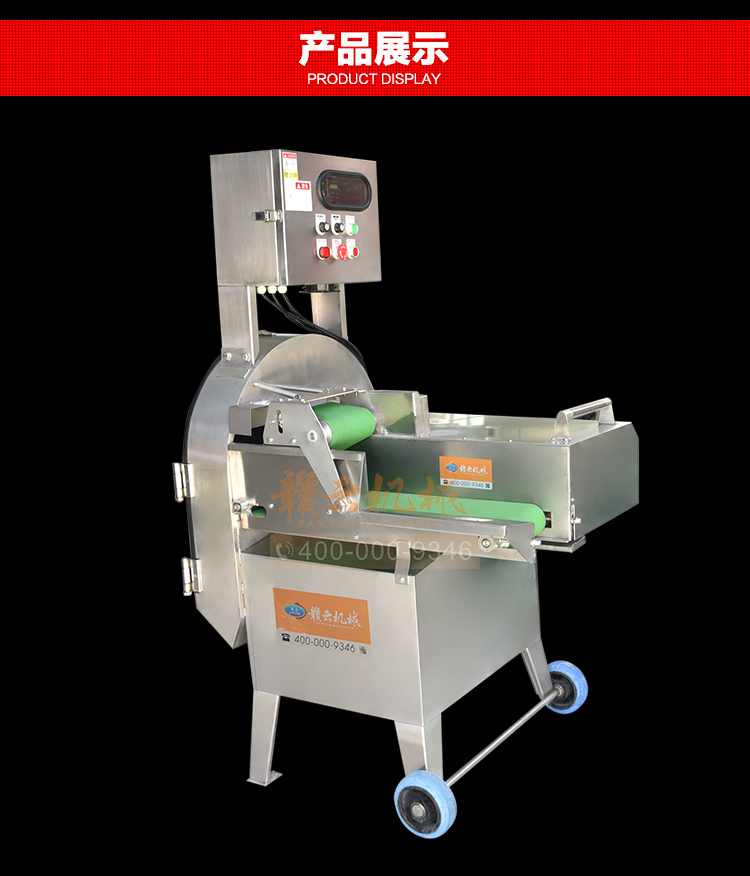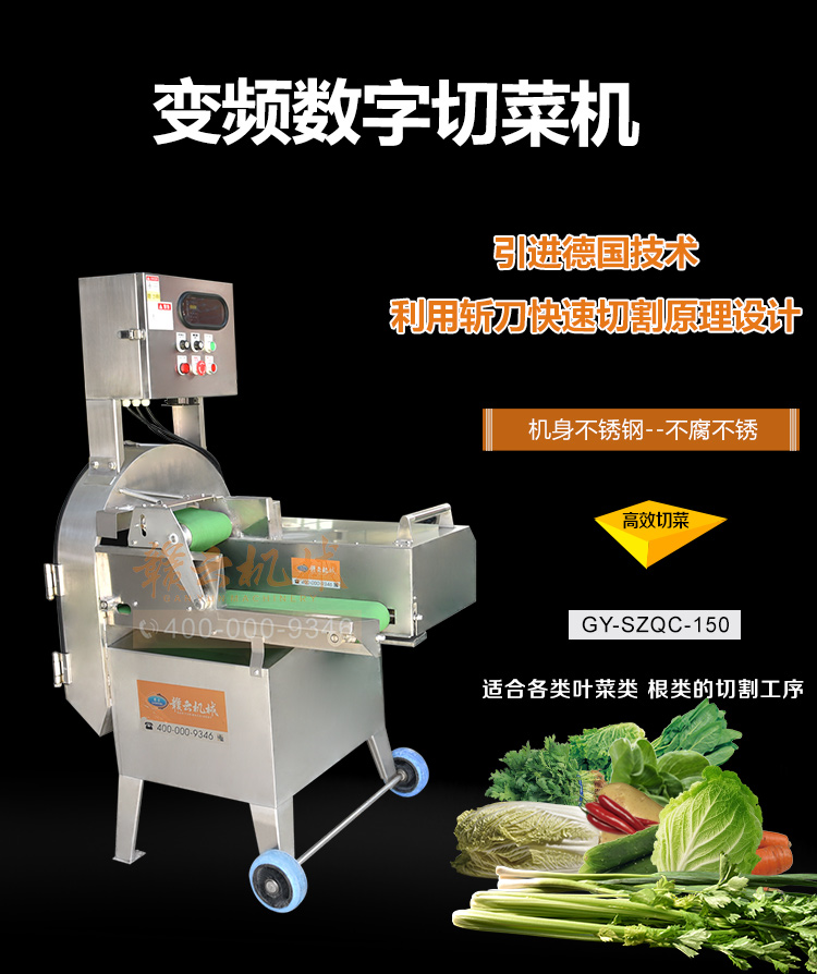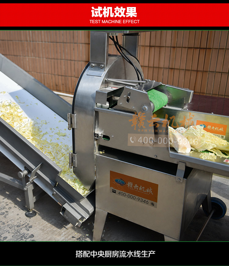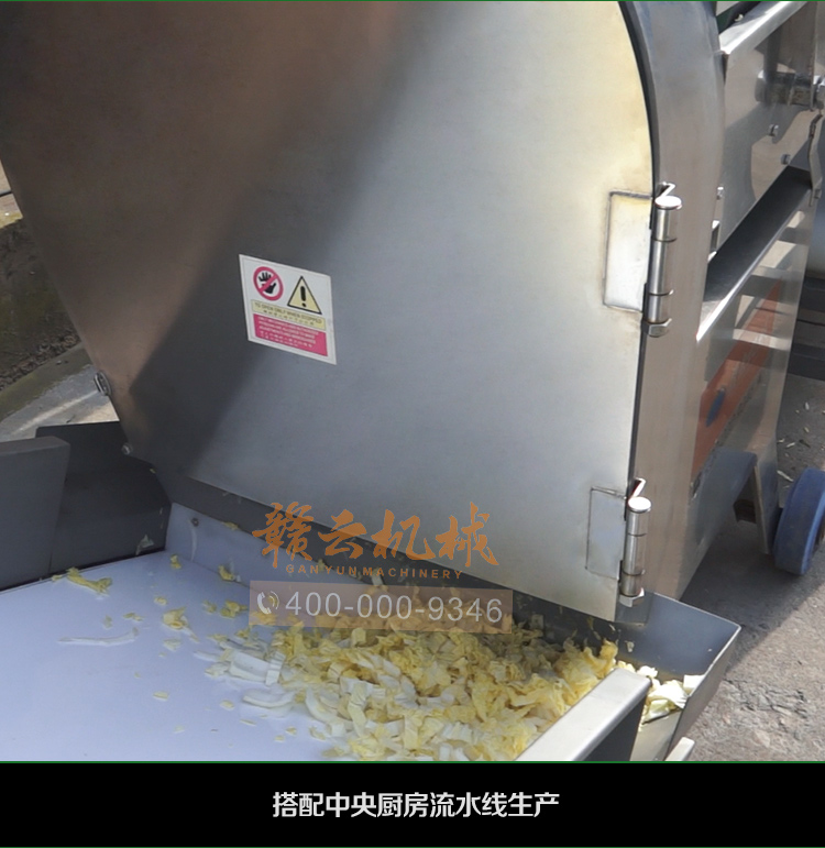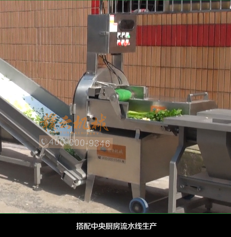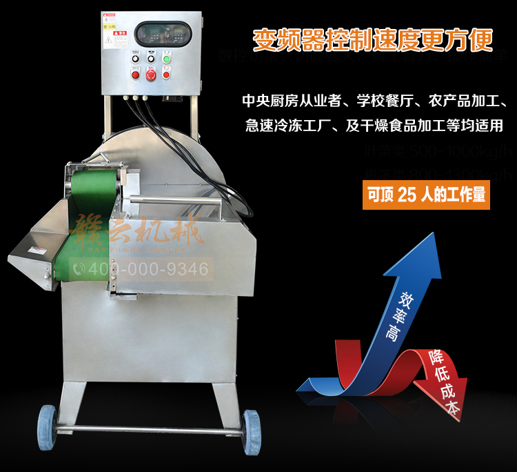 中央廚房凈菜加工設(shè)備之一_贛云牌150型數(shù)字切菜機(jī),引進(jìn)先進(jìn)技術(shù),利用斬刀快速切割原理設(shè)計,適合各類葉菜類,球根類的切割工序,1-60mm范圍內(nèi)變頻可調(diào),適合多元化中央廚房參與食堂切配之用,贛云機(jī)械,掌握肉丸加工成套設(shè)備,中央廚房凈菜設(shè)備核心技術(shù),咨詢電話400-000-9346