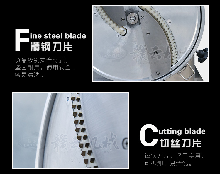 適用于土豆、蘿卜、瓜薯類、胡蘿卜、洋蔥、茄子、黃瓜以及咸菜等蔬菜類食品加工、可切絲、切片。