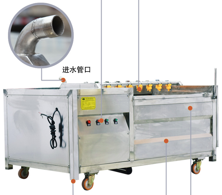 毛輥式連續(xù)自動清洗機(jī)采用食品級不銹鋼制造而成、堅(jiān)固耐用,毛輥全部采用優(yōu)質(zhì)樹脂、韌性高、耐磨性好,從而達(dá)到洗潔凈高、節(jié)省勞力、節(jié)水。