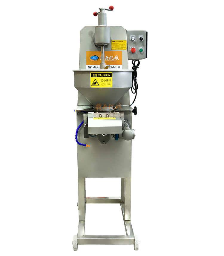 全自動(dòng)仿手工擠丸挖式成型機(jī),又稱(chēng)墨魚(yú)丸成型機(jī)或高速貢丸成型機(jī),是一款完全仿手工用匙子成型的設(shè)備。不同于普通成型機(jī)的刀片切割,用開(kāi)明型鋼勺自動(dòng)舀挖出丸子,做出丸子具有彈性好,圓度好、外表皮光滑或保持原漿體顆粒,還可以拔層的特點(diǎn),。特別在做貢丸和牛肉丸這些有肉筋的丸子的時(shí)更能顯示其顯著的性能。