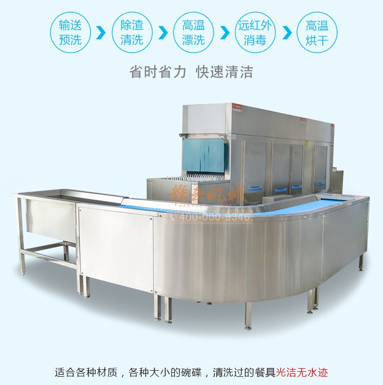 長龍式洗碗機,集除渣、洗滌、漂洗、消毒、烘干設(shè)備。功能卓越,氣質(zhì)不凡,備受用戶青睞。 贛云秉承綠色環(huán)保的產(chǎn)品理念,各系列產(chǎn)品均選用特殊材料精工制作,解決了在高溫消毒、高溫烘干環(huán)境下,撥齒“變形、異味、微毒”的問題,真正使洗碗機行業(yè)在“長龍式遠紅外高溫消毒、高溫烘干”領(lǐng)域不再是一句空話。