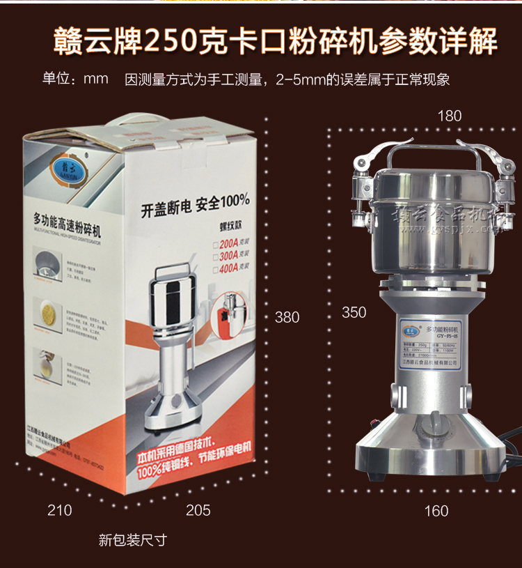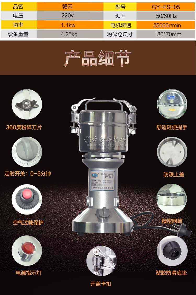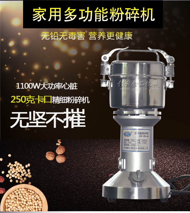 贛云系列多功能粉碎機(jī)采用純銅高速電機(jī)帶動(dòng)粉碎刀片將物料快速打成粉末,可用于粉碎五谷、雜糧、田七、阿膠、白叁等,一般粉碎時(shí)間1-2分鐘即可,新款粉碎機(jī)改保險(xiǎn)絲為空氣過(guò)載保護(hù)器,使用更安全,我廠提供的粉碎機(jī)有100克-1000克不同型號(hào)的多功能粉碎機(jī)。