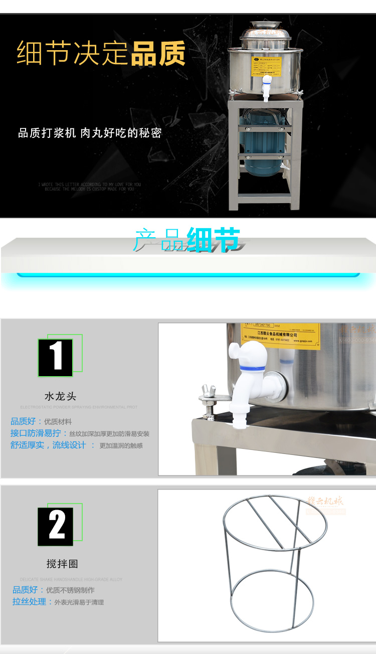 高速肉丸打漿機(jī),做豬肉丸選贛云牌直立式高速肉丸打漿機(jī)系列,家用商用選打肉泥機(jī),贛云全不銹鋼雙桶打漿機(jī),采用新無縫焊接技術(shù),弧形打漿桶,打漿效果更好,充分發(fā)揮機(jī)器的破碎,攪拌,高速的作用!配上贛云3.0kw大功率純銅國(guó)標(biāo)電機(jī),質(zhì)量好的不得了。