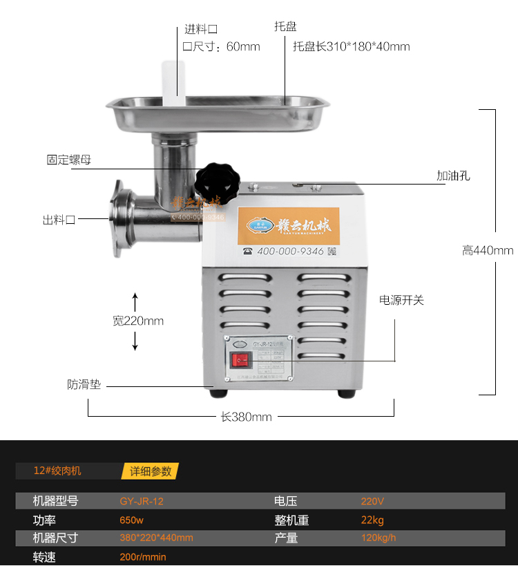 贛云臺(tái)式新款絞肉機(jī) 不銹鋼精品配銅線電機(jī) 做工升級(jí) 品質(zhì)好,冬季絞肉灌腸好設(shè)備,可絞肉末,可絞干貨,絞生姜大蒜等,配灌腸筒可灌制香腸臘腸,絞龍采用食品級(jí)不銹鋼,符合食品衛(wèi)生需求。歡迎選購(gòu)。