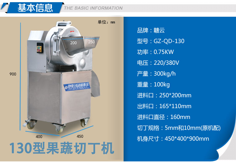 果蔬加工機(jī)械->凈菜加工設(shè)備->130型果蔬專用切丁機(jī)(鋁鎂合金) | |||||||