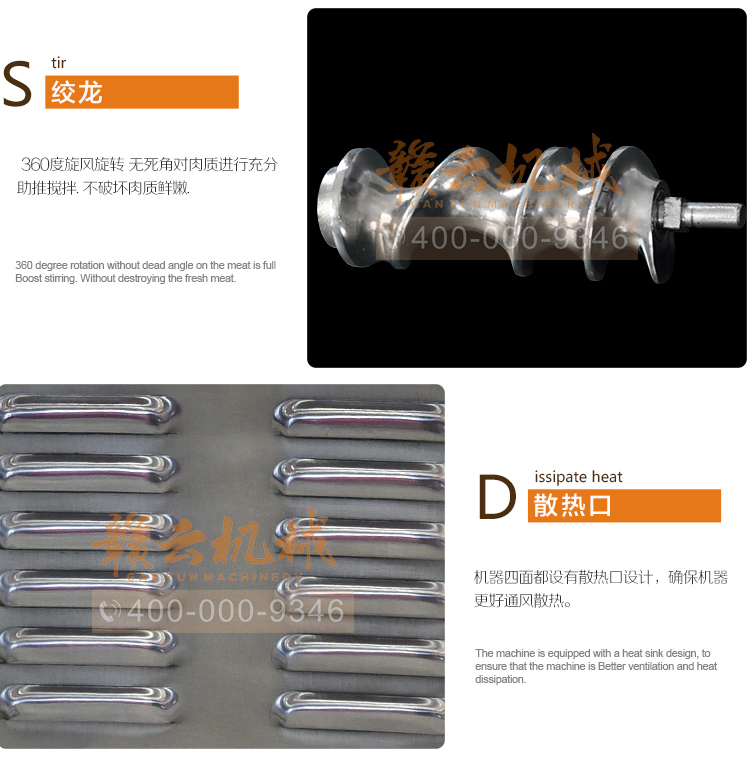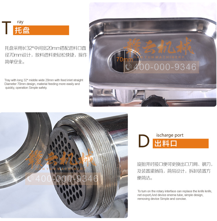 這款22型臺式不銹鋼絞肉機(jī),采用平滑帶槽三通升級,融合不銹鋼絞龍設(shè)計,外觀設(shè)置更顯檔次,散熱性能更好,體積更大!時絞肉量220kg
