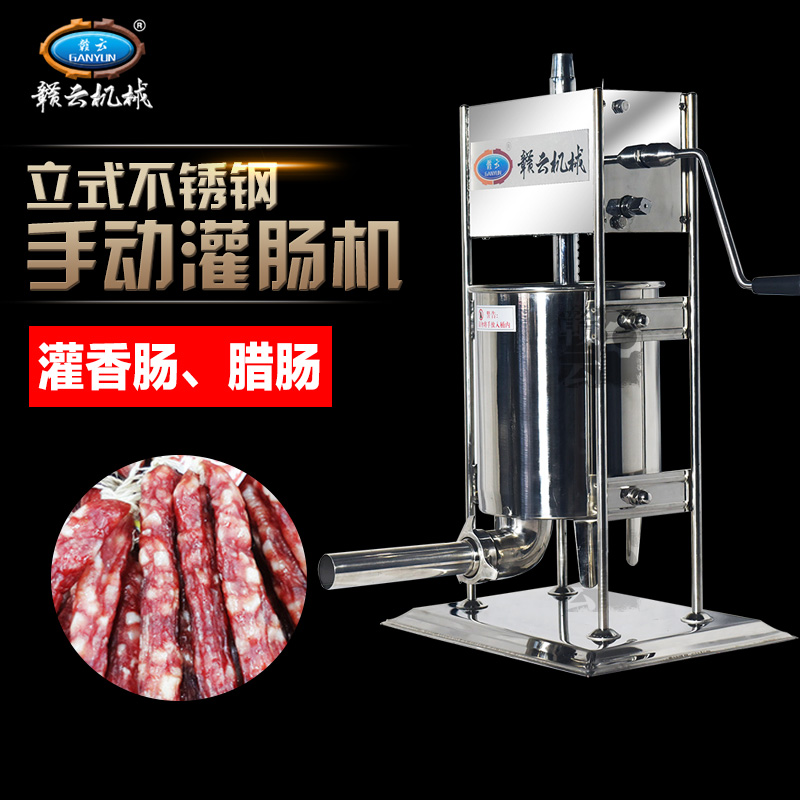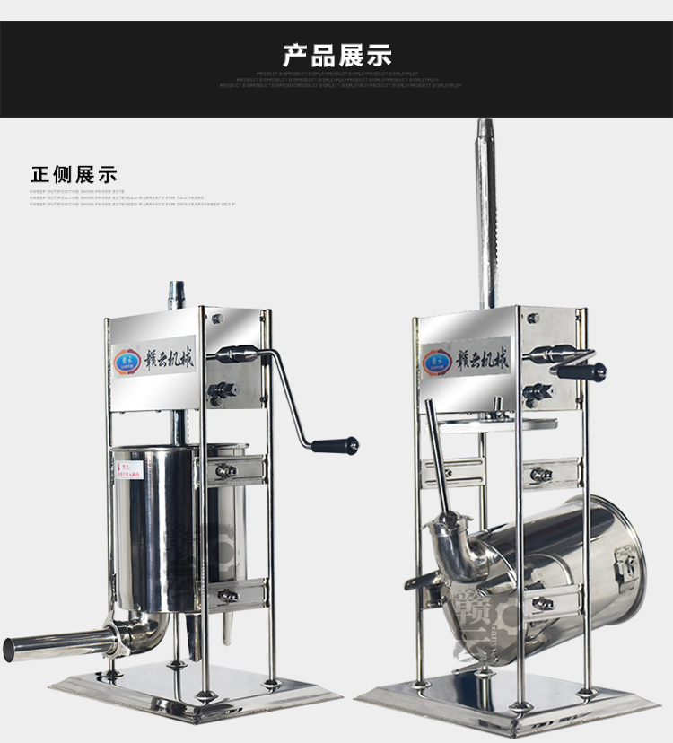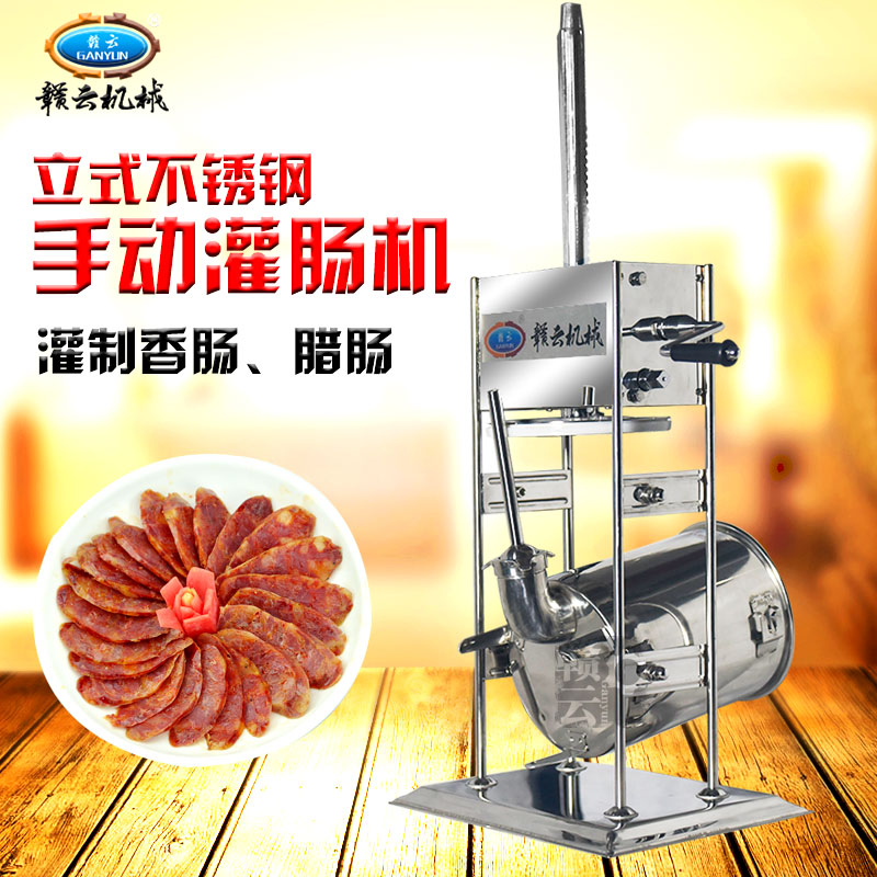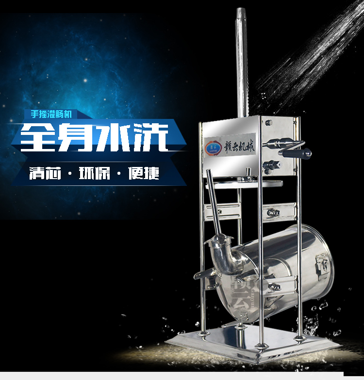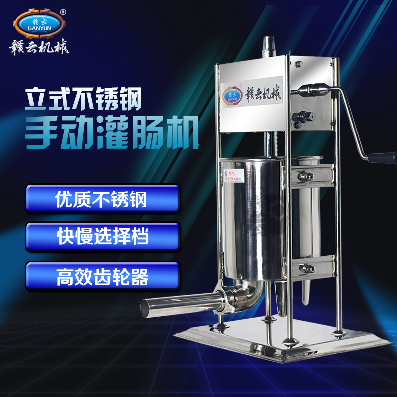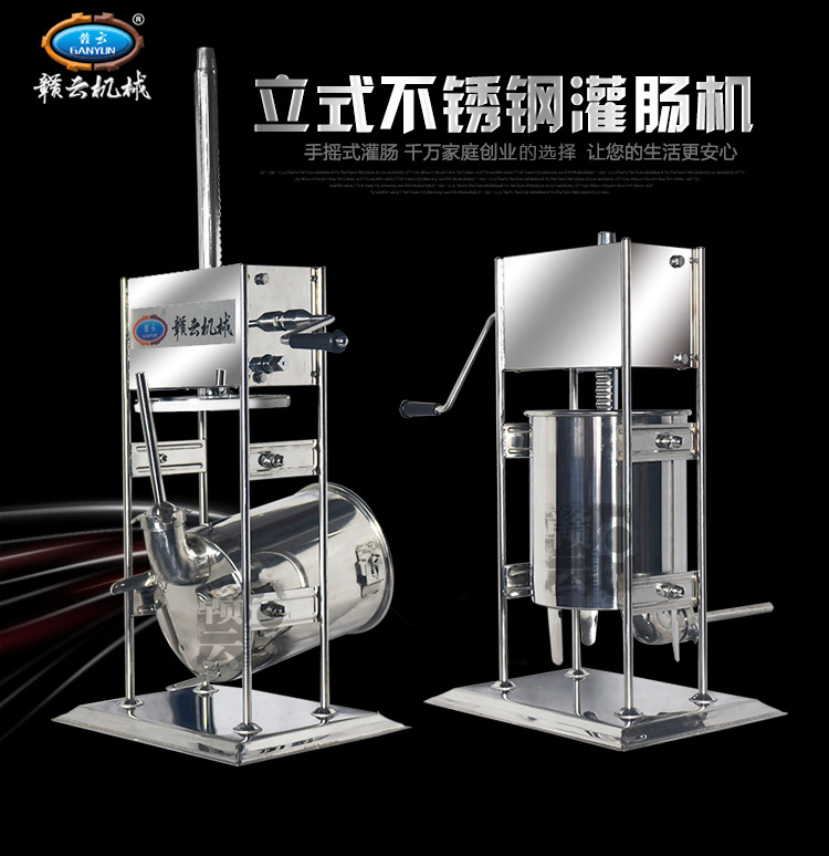 贛云牌立式不銹鋼手搖灌腸機(jī),專業(yè)灌制各種腸類(lèi),如臘腸、香腸、火腿腸、親親腸。整機(jī)采用全齒輪優(yōu)質(zhì)拉桿升降系統(tǒng)設(shè)計(jì),液壓式灌腸,并兩檔速度可調(diào),并有效利用了機(jī)械杠桿省力原理,讓你灌腸輕松自在,灌腸完畢之后還可放心全身水洗,裝料桶亦可方便拆卸,便于清洗。