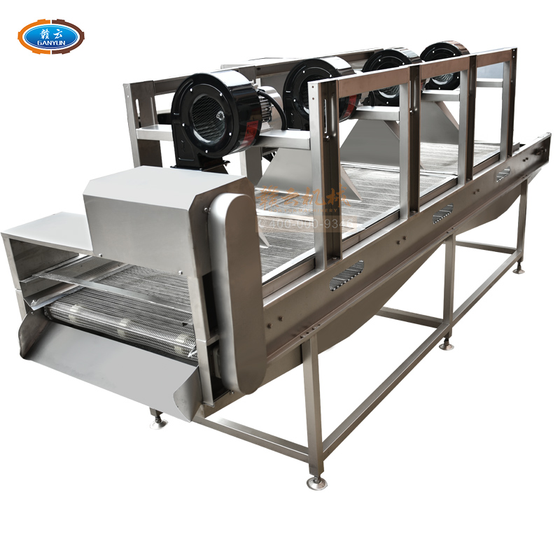 果蔬食品風(fēng)干機(jī),高效、快速、環(huán)保、安全、自動(dòng)化。強(qiáng)風(fēng)去除表面水分+震動(dòng)輸送。果蔬食品風(fēng)干機(jī)主要用于清洗后的果蔬去除表面水,震動(dòng)吹干改變了傳統(tǒng)離心脫水機(jī)帶來的蔬菜也損傷和傳統(tǒng)風(fēng)干機(jī)除水不徹底等問題,蔬果切割后清洗后進(jìn)入震動(dòng)風(fēng)干機(jī),在震動(dòng)頻率下使物料向前傳送,在傳送過程中經(jīng)過多次強(qiáng)風(fēng)吹落物料表面的多余水分,使其蔬果表面無水鮮亮。最大程度上節(jié)約時(shí)間成本,勞動(dòng)成本和運(yùn)營(yíng)成本,廣泛適用于蔬菜加工行業(yè)及廠礦、部隊(duì)、醫(yī)院、各大院校等單位食堂。