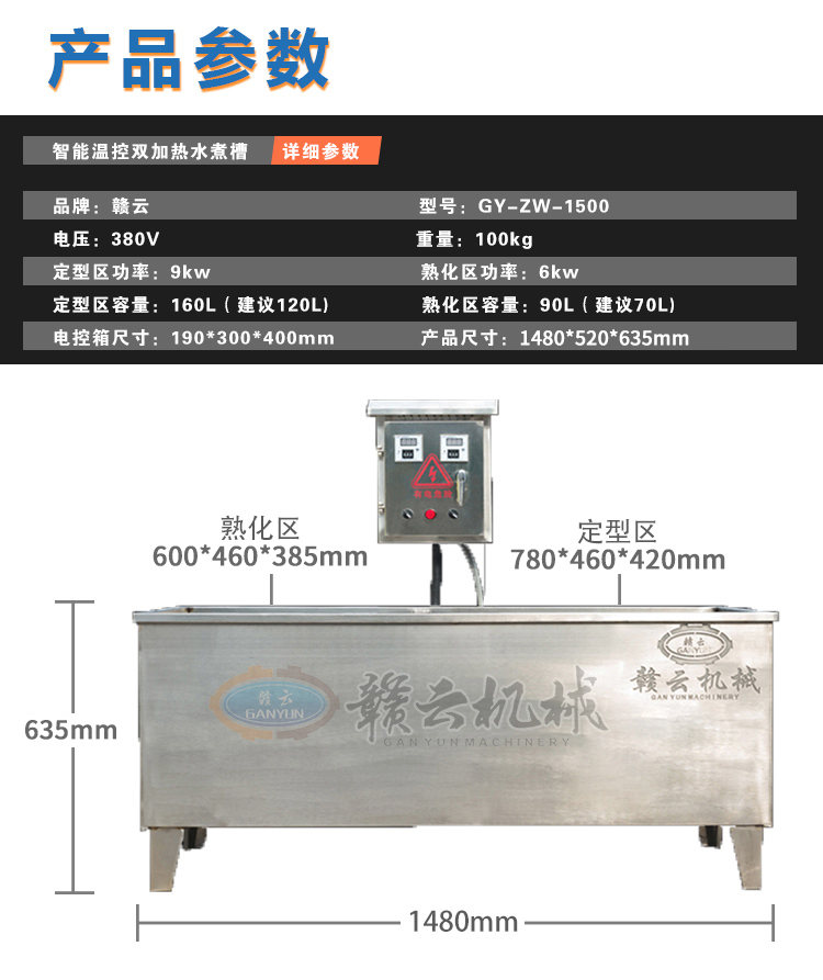 熟化槽:900*440*420mm 容量:160L 【建議120L】 加熱功率:9kw