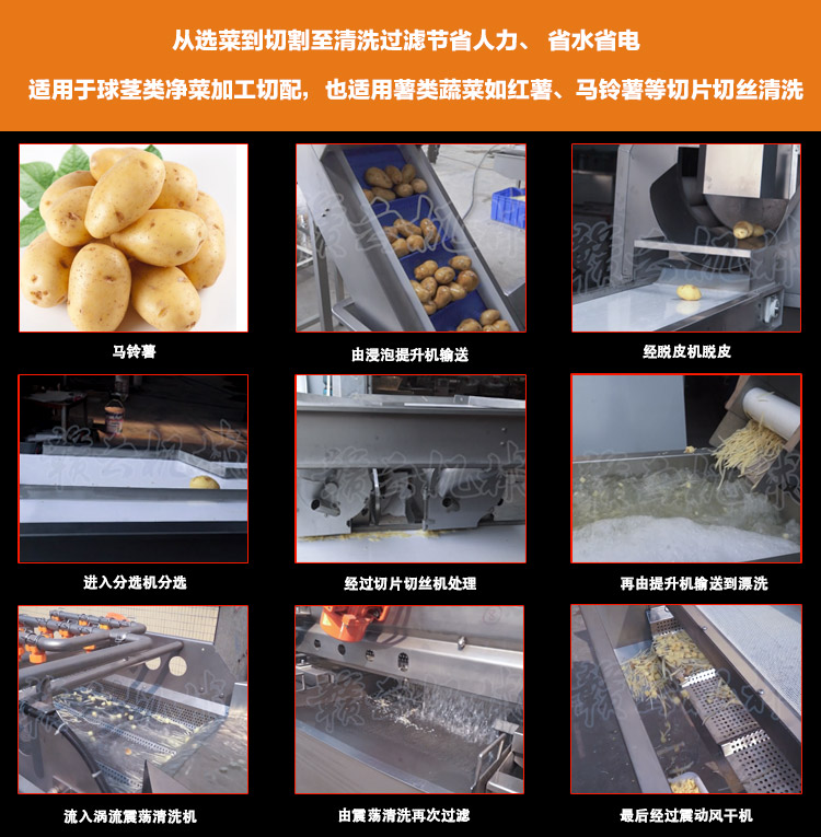 果蔬加工機械->凈菜加工設(shè)備->根莖類清洗流水線 | |||||||