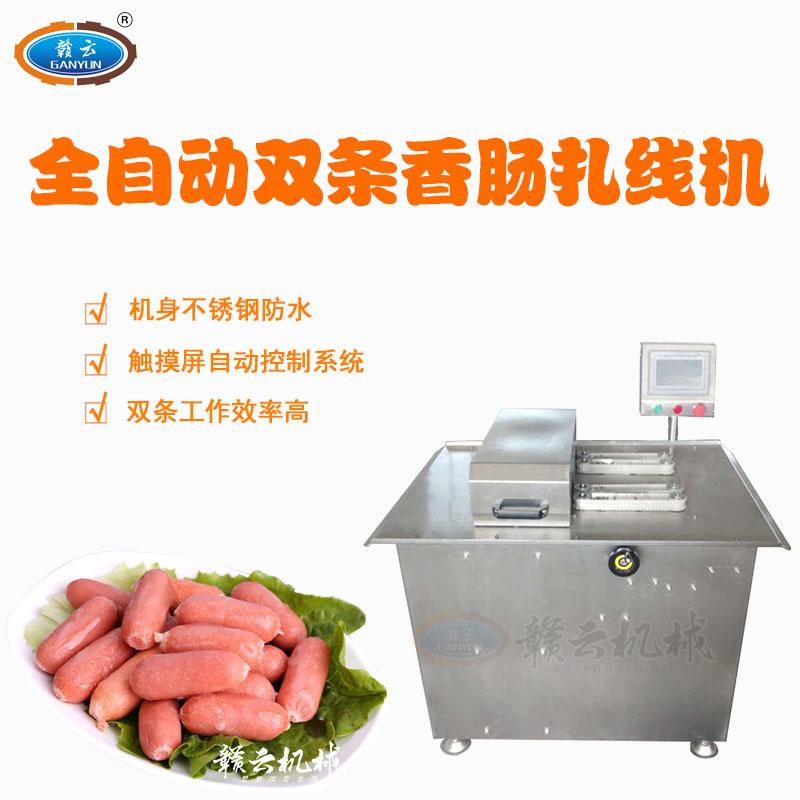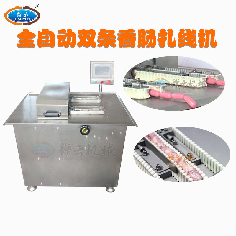 全自動雙路高速香腸扎線機(jī),自動分份,自動繞線,全程自動化控制。該機(jī)采用了優(yōu)質(zhì)電機(jī)和本公司自主研發(fā)的控制系統(tǒng),機(jī)身全不銹鋼制造、效率高、易操控、節(jié)約生產(chǎn)原料等優(yōu)點(diǎn),產(chǎn)品長度的調(diào)節(jié)可以隨心所欲