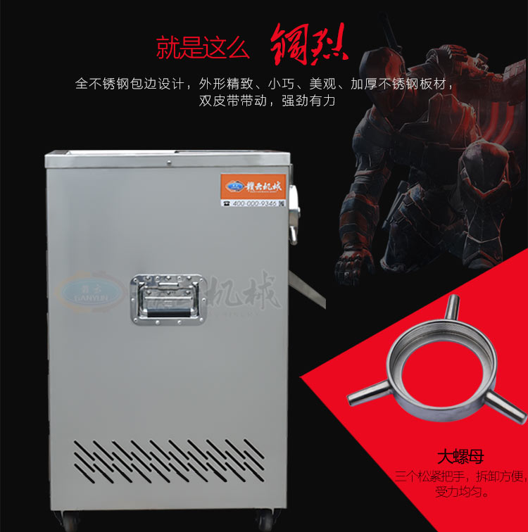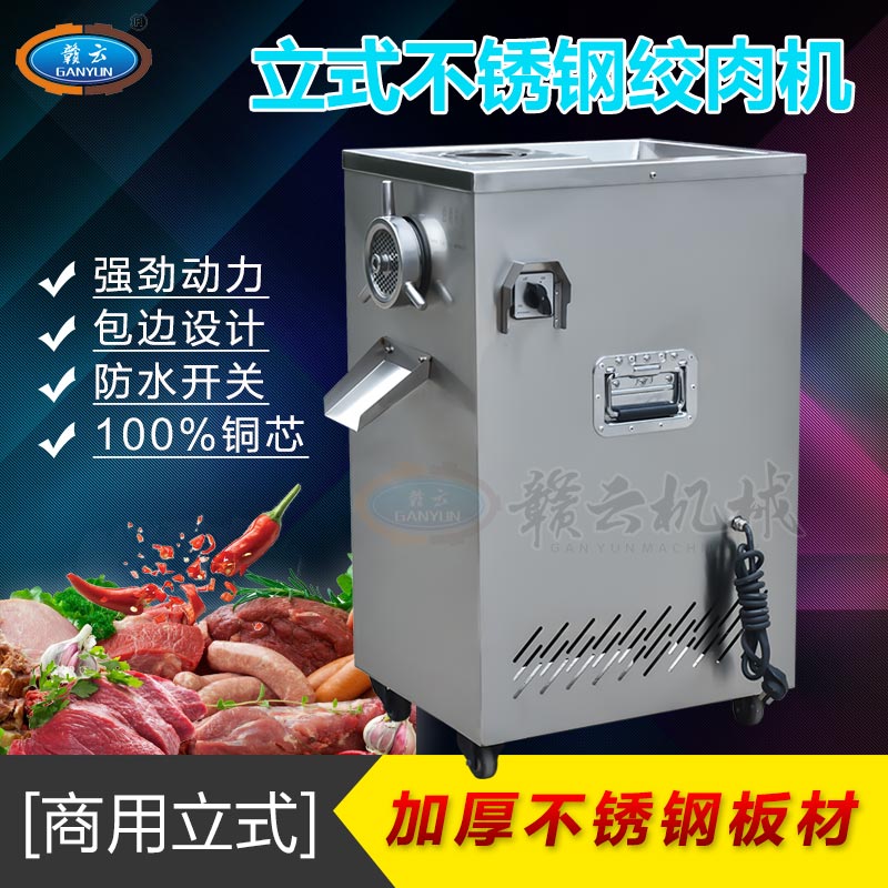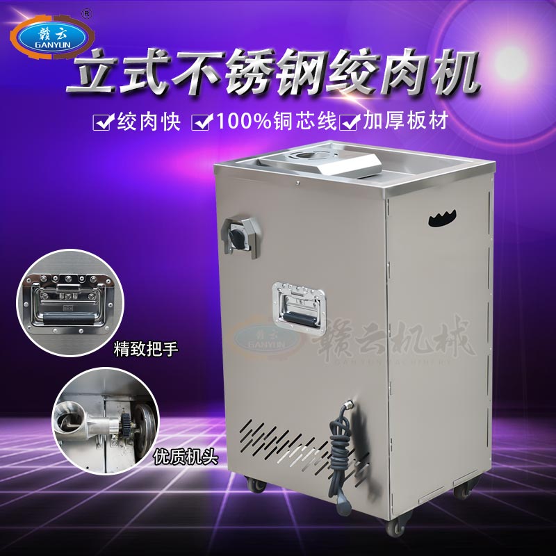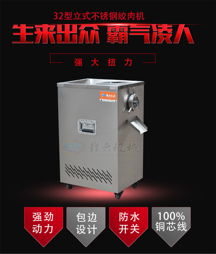 32型立式不銹鋼絞肉機(新),不銹鋼精裝款采肉機,旋鈕開關,三通內(nèi)部帶有齒痕,絞肉摩擦力大,絞肉快,雙皮帶帶動,強大扭力,加厚板材,散熱孔美觀實用,插銷式邊板支撐桿更長,絞肉不糊,速度快,精工之作。