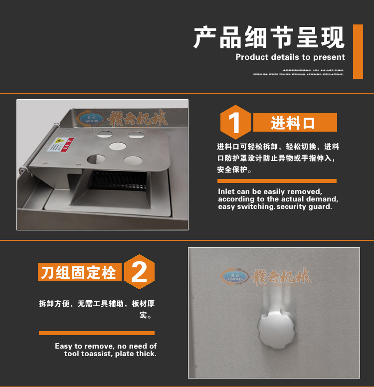 贛云360切肉機(jī),使用雙組刀設(shè)計(jì),可以對(duì)里脊肉、豬肉、牛肉、雞肉等加工切片切絲,也可對(duì)富有彈性的果蔬切片切絲,如:辣椒、魔芋等切片切絲,切出的肉片肉絲厚薄均勻,適用于預(yù)制菜加工、肉制品加工設(shè)備、中央廚房加工設(shè)備、食堂設(shè)備中使用