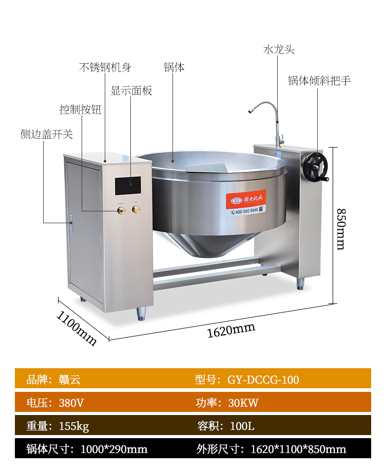 中央廚房設(shè)備->熱調(diào)理區(qū)設(shè)備->100L可傾斜式電磁炒鍋 | |||||||