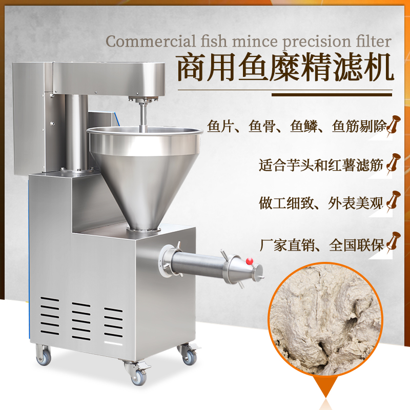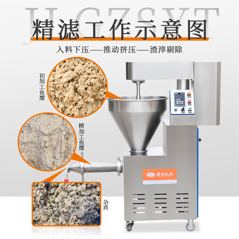 贛云200型魚(yú)糜精濾機(jī)是一款專用于過(guò)濾魚(yú)肉中雜質(zhì)的設(shè)備,通過(guò)機(jī)器對(duì)采集好的魚(yú)肉進(jìn)行精濾,去除殘留在魚(yú)肉中的魚(yú)刺、魚(yú)鱗,魚(yú)筋,魚(yú)皮等雜質(zhì),提升魚(yú)肉品質(zhì)。魚(yú)肉精濾機(jī)采用食品級(jí)不銹鋼材質(zhì),帶有變頻功能,設(shè)備適用于生產(chǎn)魚(yú)丸、魚(yú)豆腐、鱈魚(yú)腸等食品加工廠。