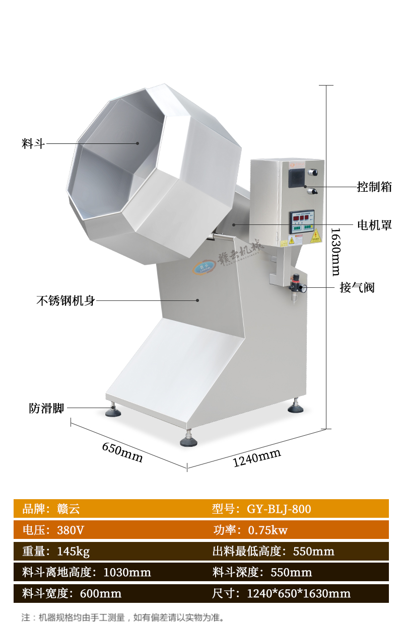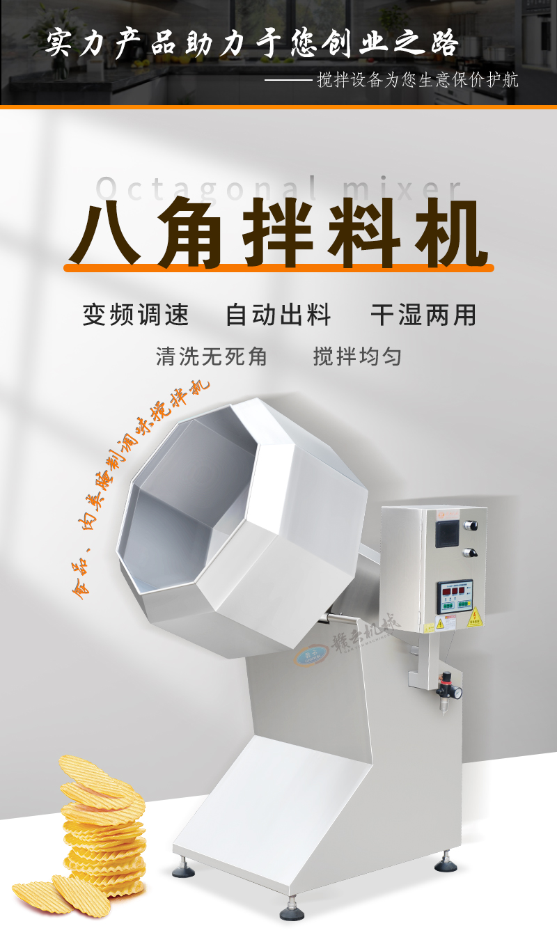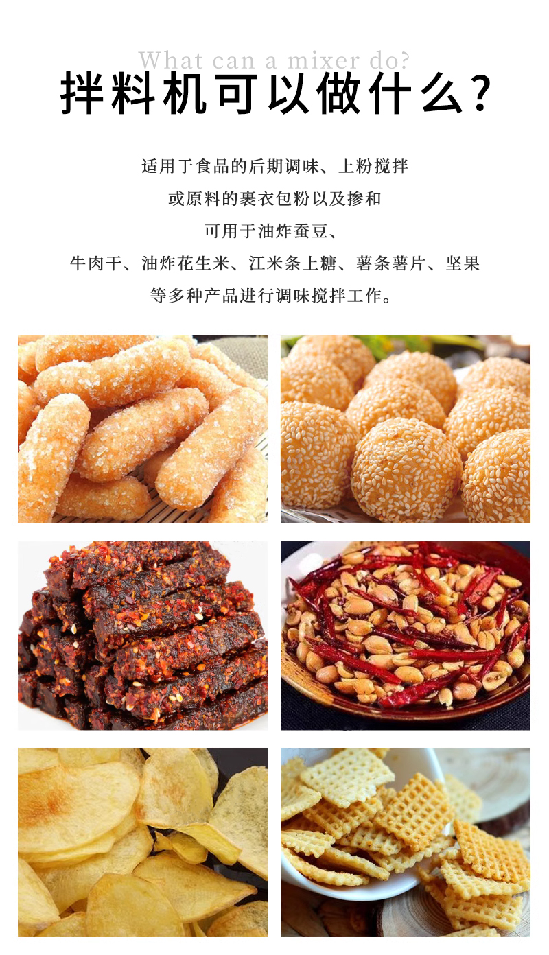 適用于堅果、蠶豆、牛肉干、薯片、花生、月亮巴、鍋巴等食品的快速均勻上料調(diào)味。