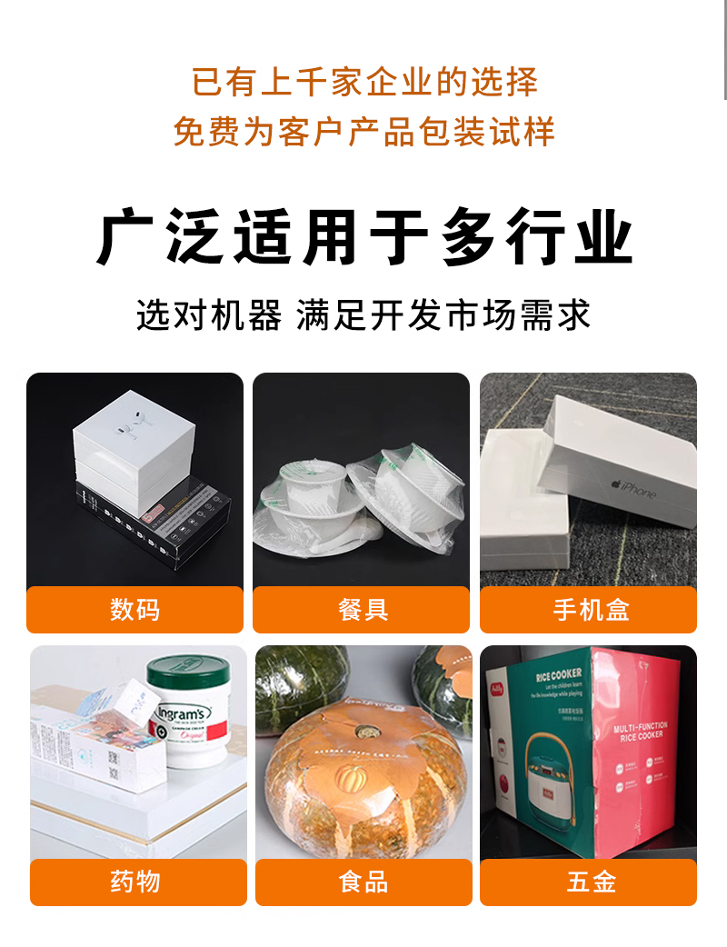 適用于數(shù)碼、餐具、手機(jī)盒、藥物、食品、五金材料等外包裝、塑封等。