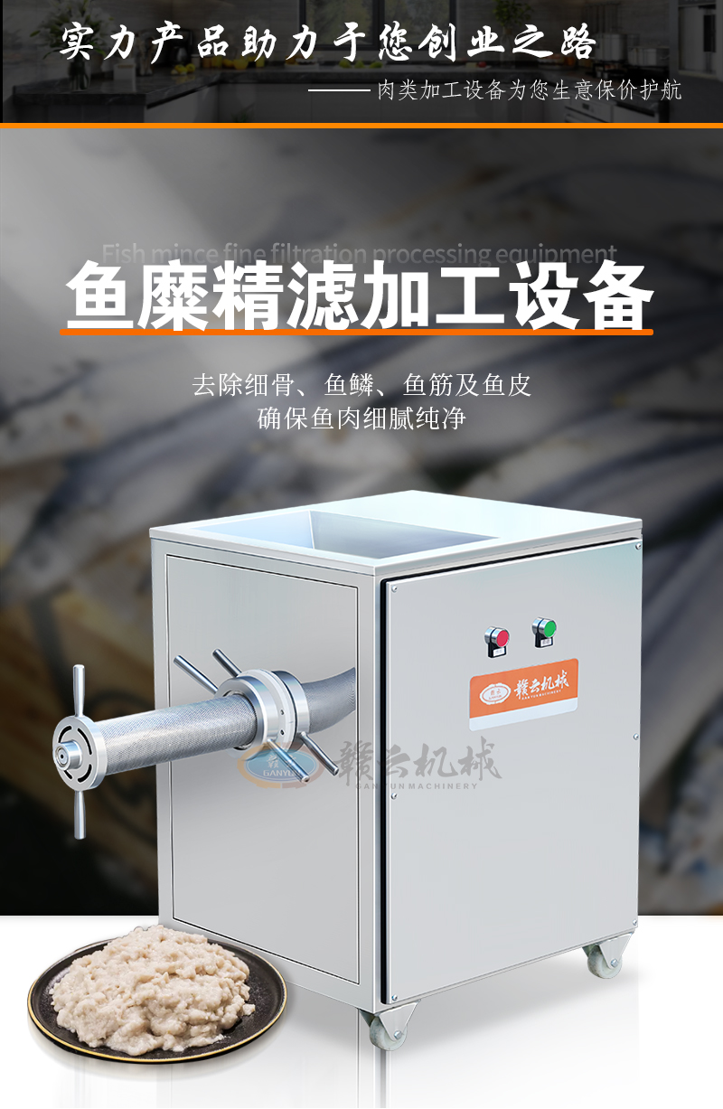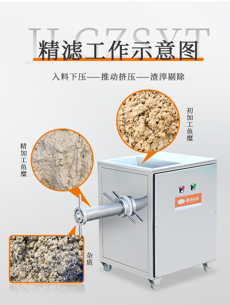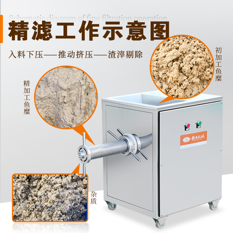 用于去除殘留在魚肉中的魚刺、魚細(xì)骨、魚皮、魚鱗、魚筋等雜質(zhì),提升魚肉品質(zhì)。