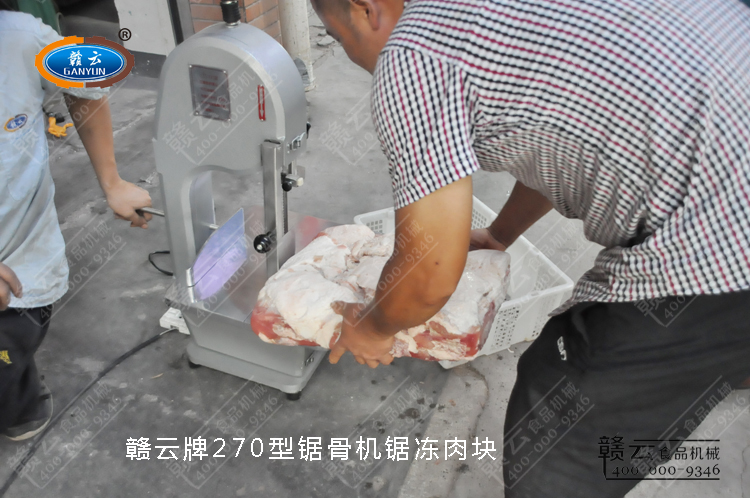 凍肉塊一般都是采用凍肉刨肉機(jī)加工處理刨成片狀,一般大型凍肉制品加工廠才會使用,但是小型的食品加工廠只是偶爾用到,今日贛云告訴你,凍肉塊也可以用贛云牌270型商用小型鋸骨機(jī)切割,而且切面整齊,機(jī)械占地面積小,不損傷肉類組織細(xì)胞,除了可以鋸凍肉,都凍骨頭、新鮮排骨、凍魚等切割效果也非常好。