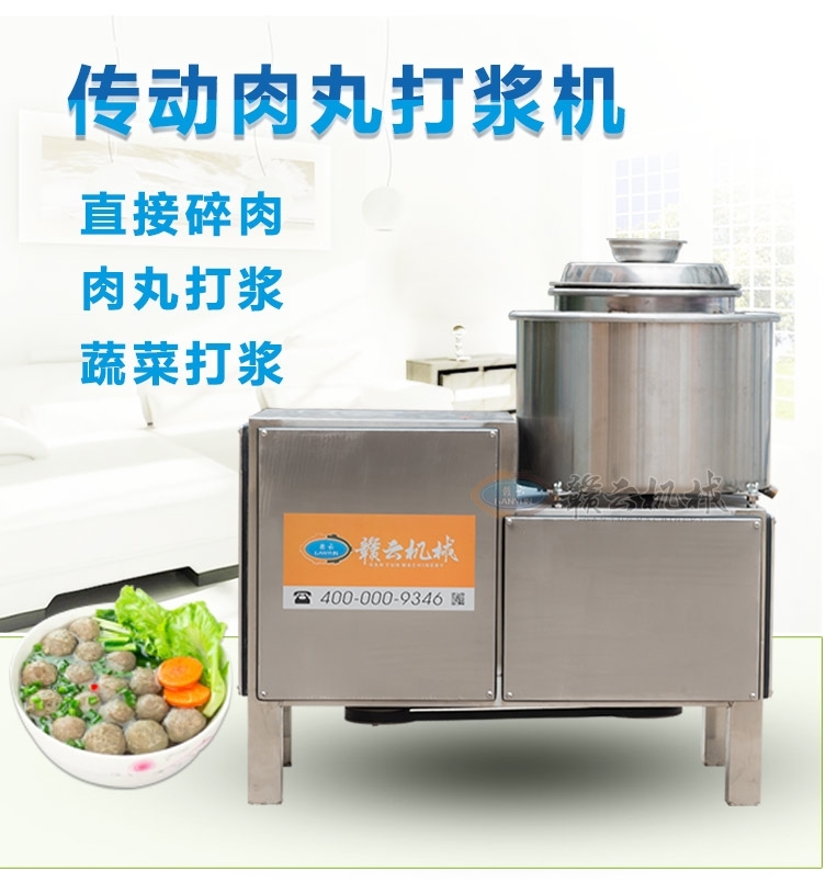 上面這臺(tái)打漿機(jī)是一款商用功能的碎肉機(jī),可以針對(duì)做肉丸的前期肉料打成泥漿狀,也可以針對(duì)蔬菜打漿。