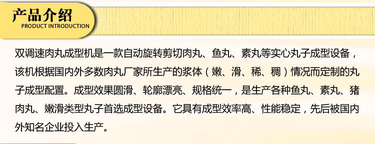 雙調(diào)速肉丸成型機,這款肉類加工廠必備的設(shè)備,可以制作實心魚丸,素丸,肉丸等,是一款自動旋轉(zhuǎn)剪切機,制作出的肉丸可以銷往各地,這款肉丸成型機在食堂,飯店、工廠等,是必不可少的一款加工設(shè)備,深受客戶青睞,該機根據(jù)國內(nèi)外多數(shù)肉丸廠家所生產(chǎn)的漿體(嫩、滑、稀、稠)情況而定制的丸子成型配置。成型速度可調(diào)90-500粒每分鐘,成型效果圓滑、輪廓漂亮、規(guī)格統(tǒng)一,是生產(chǎn)各種魚丸、素丸、豬肉丸、嫩滑類型丸子首選成型設(shè)備。它具有成型效率高、性能穩(wěn)定,先后被國內(nèi)外知名企業(yè)投入生產(chǎn)。