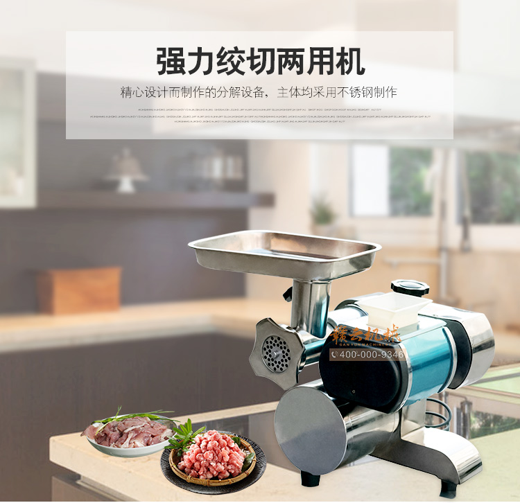 這款機器可以絞肉和切肉,肉絲,肉粒、肉沫一機搞定。