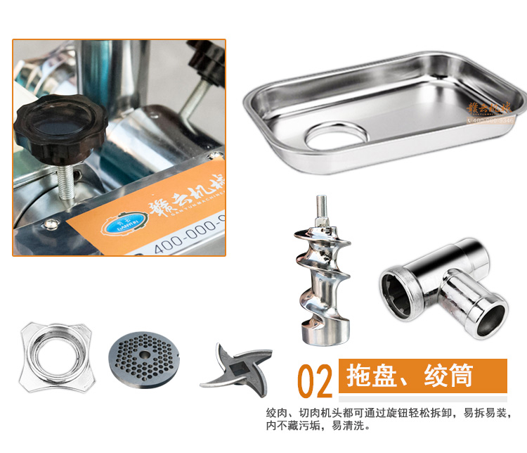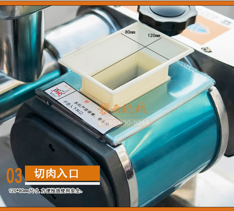 (5)添加肉塊一定要均勻,不能過多,以免影響電機損壞,如發(fā)現(xiàn)機器運轉(zhuǎn)不正常,應立即切斷電源,停機后檢查原因。