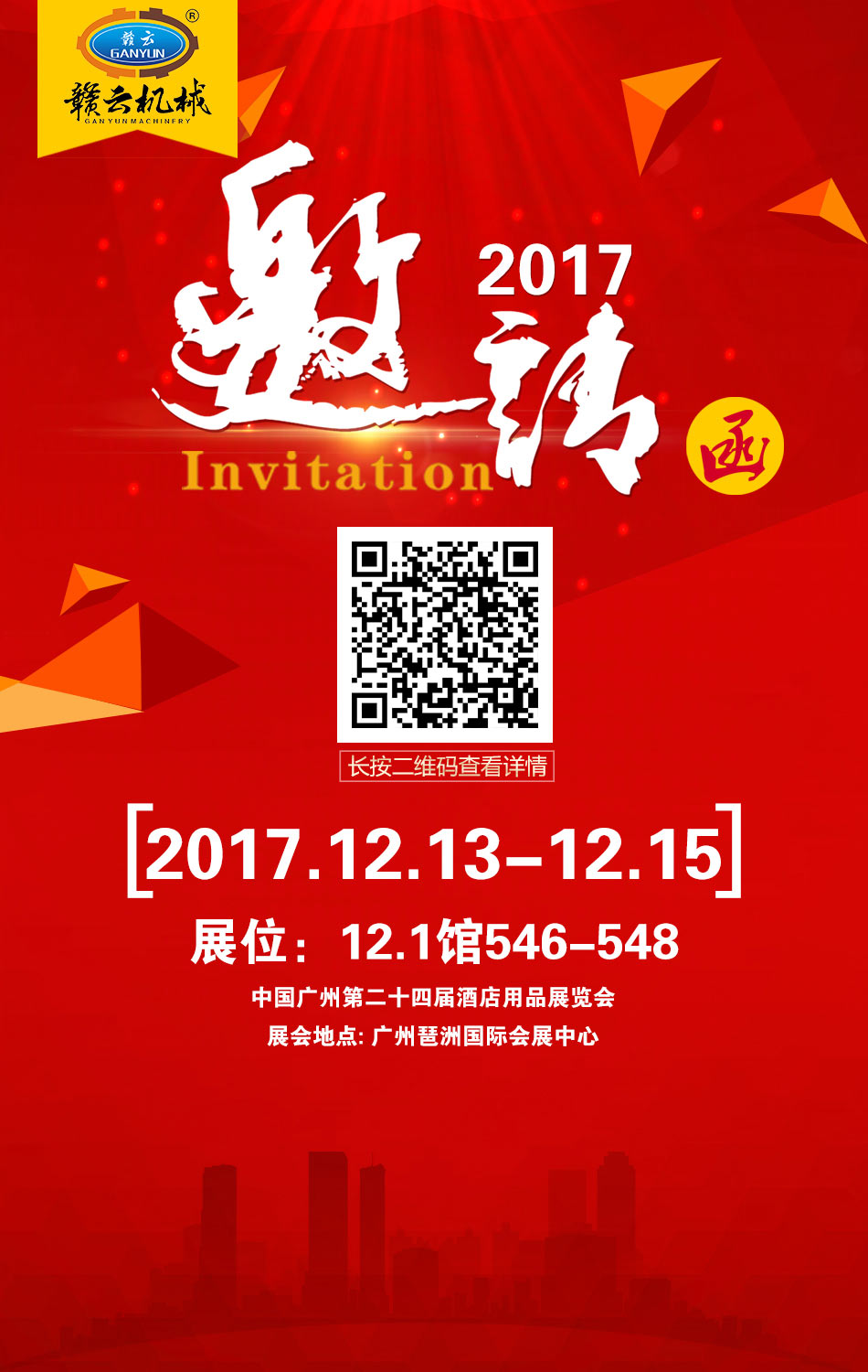 我們在12月13日-15日參加第二十四屆廣州國際酒店用品展覽會(huì),同時(shí)舉辦年底距惠活動(dòng)。買設(shè)備送車,還有折扣,年度僅限這三天,就100個(gè)名額!!!