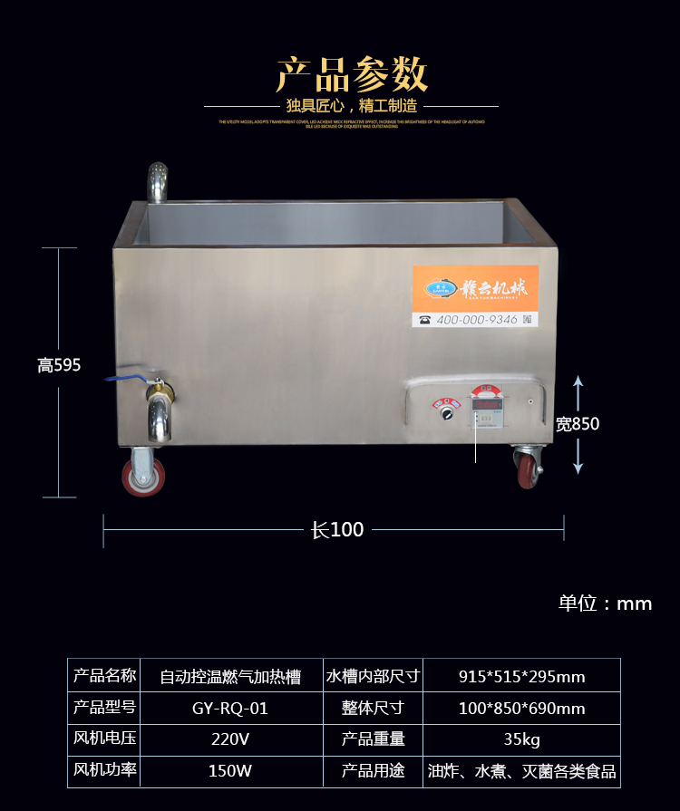 燃?xì)饧訜嶙詣?dòng)控溫槽,是我公司全新設(shè)計(jì)研發(fā)的一款適用于油炸、水煮、滅菌各類食品及定型、熟化、油炸各種肉丸的多用槽。