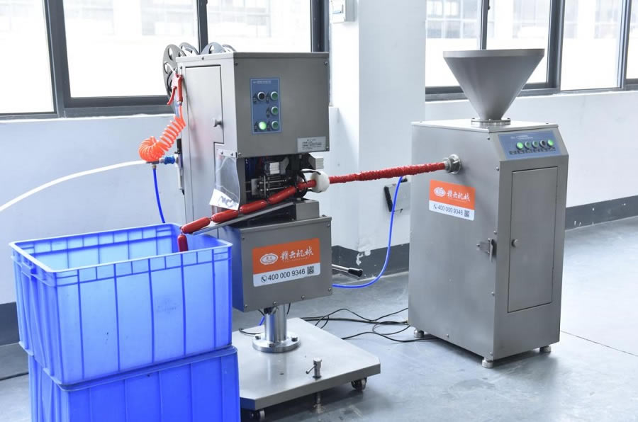 火腿腸肉漿加工好了,接下來就是灌腸打扣了,自動化灌腸打扣一體機(jī),告別傳動半自動灌腸手動打扣的低效率和繁瑣,肉漿一倒,機(jī)器一開,參數(shù)一調(diào),灌腸打扣一步到位,自動化灌裝,精準(zhǔn)灌火腿腸,每一節(jié)都是一樣飽滿,每一節(jié)都是一樣長。