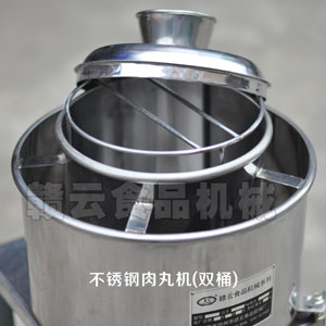 打漿桶采用目前國(guó)內(nèi)肉丸機(jī)的最新技術(shù)--無焊接縫,在舊款全不銹鋼肉丸機(jī)的基礎(chǔ)上給支撐架加粗加厚,用不銹鋼蓋,打漿雙桶,刀柄刀片均采用不銹鋼材質(zhì)。打漿桶裝肉量3L,一次可打肉漿6斤左右,采用2800r/min高速電機(jī),故稱之為高速肉丸機(jī)。